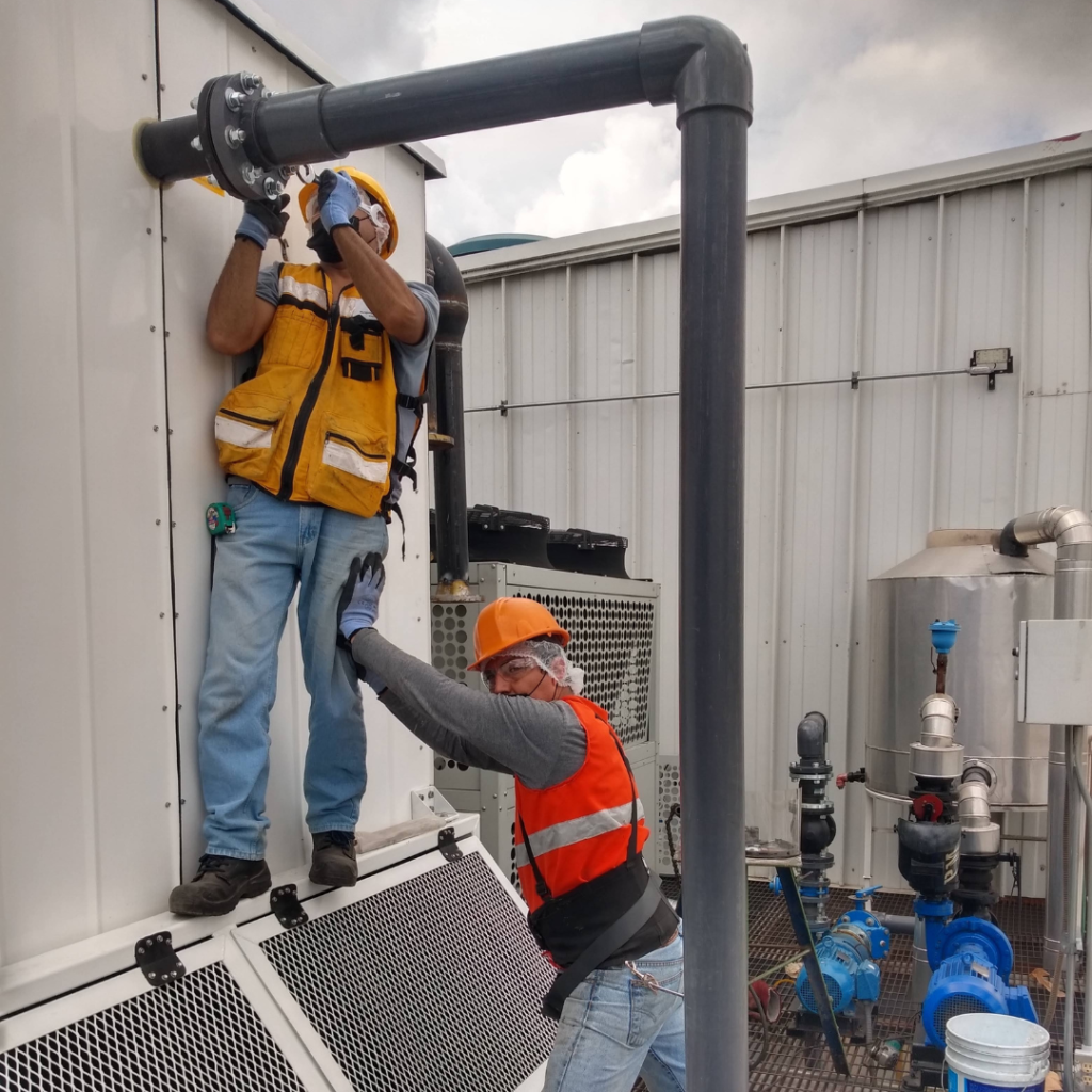 - Estructura Robusta: Las torres HIDROFAN están diseñadas con un sólido soporte estructural en todo su cuerpo y puntos de carga, lo que previene cualquier riesgo de colapso repentino que puede ocurrir en torres de fibra de vidrio convencionales.